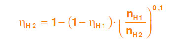 Эти уравнения действительны при условии, что характеристика системы остается неизменной для nH1 и nH2 и образует параболу, выходящую из точки с координатами (0, 0) — см. раздел 3.1.1. Более того, предполагается, что и КПД насоса остается неизменным при двух скоростях.