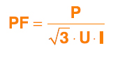 Если известна мощность (Р) и действующее значение силы тока и напряжения, так называемый коэффициент мощности (PF) может быть рассчитан по следующей формуле: