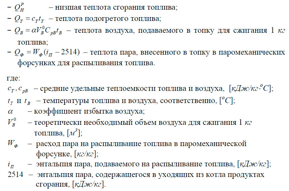 Суммарная теплота, вносимая с различными средами в паровой котел, называется располагаемой теплотой: