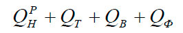 В каждой части котла имеются свои потери теплоты в окружающую среду. Общая потеря теплоты на охлаждение котла – Q5 является суммой частных потерь: в топке, испарительной части котла, пароперегревателе и экономайзере: