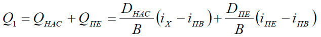 Полезно использованной теплотой – Q1 , считается теплота, отобранная из котла с паром. Для котлов с одновременным отбором насыщенного и перегретого пара она состоит из суммы полезной теплоты, отобранной из котла с насыщенным паром – QНАС , и полезной теплоты, отобранной из котла с перегретым паром – QПЕ :