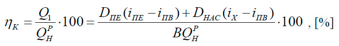 а выразив полезно использованную теплоту через паропроизводительность котла, получим выражение для КПД: