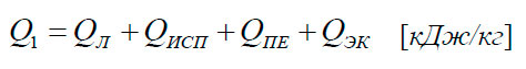 Полезно использованная теплота в котле Q1 складывается из теплоты, ушедшей на испарение воды в лучевоспринимающих – QЛ , и конвективных – QИСП поверхностях нагрева; теплоты, ушедшей на перегрев пара в пароперегревателе – QПЕ , и на подогрев воды в экономайзере – QЭК . Таким образом значение полезной теплоты можно выразить, как: