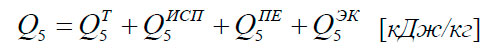 - Q5 – теплота, рассеиваемая в окружающее пространство через обшивку и изоляцию котла, [кДж/кг];