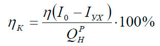 КПД котла можно определить, как отношение полезно использованной теплоты к теплоте сгорания топлива: